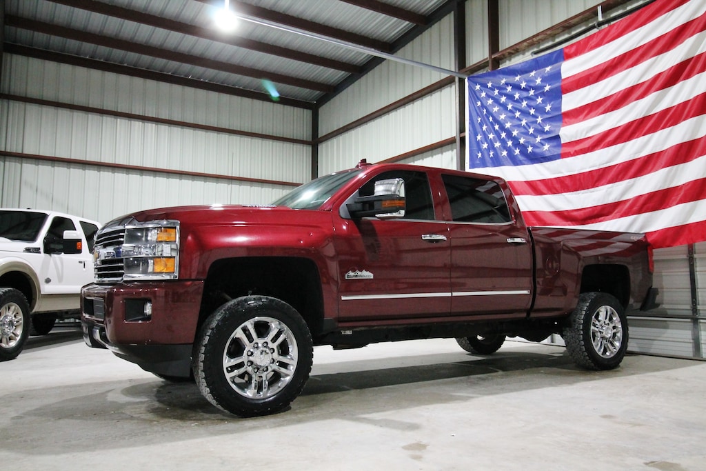 This 2015 Chevrolet Silverado 2500HD High Country 4x4 is a one-owner, clean Carfax Texas truck with only 145K miles, locally owned in Central Texas since new and recently traded in, powered by the proven 6.6L Duramax diesel paired with the Allison automatic transmission and four-wheel drive. It’s leveled with aftermarket upper control arms and sits on like-new BFG all-terrain tires, equipped with a B&W gooseneck hitch, factory projector headlights, and painted-to-match bumpers for a clean, upscale look. While it has a handful of minor dings and scratches, it’s overall a very nice, well-kept truck. Inside, the High Country package delivers premium saddle leather interior with dual power heated and cooled seats, lane departure alert, fixed center console, factory touchscreen radio with navigation, backup camera, sunroof, power adjustable pedals, electronic 4x4, built-in trailer brake, and full power options including mirrors, windows, and locks. This truck truly has it all, offering luxury, capability, and Duramax performance in a solid, well-maintained package.