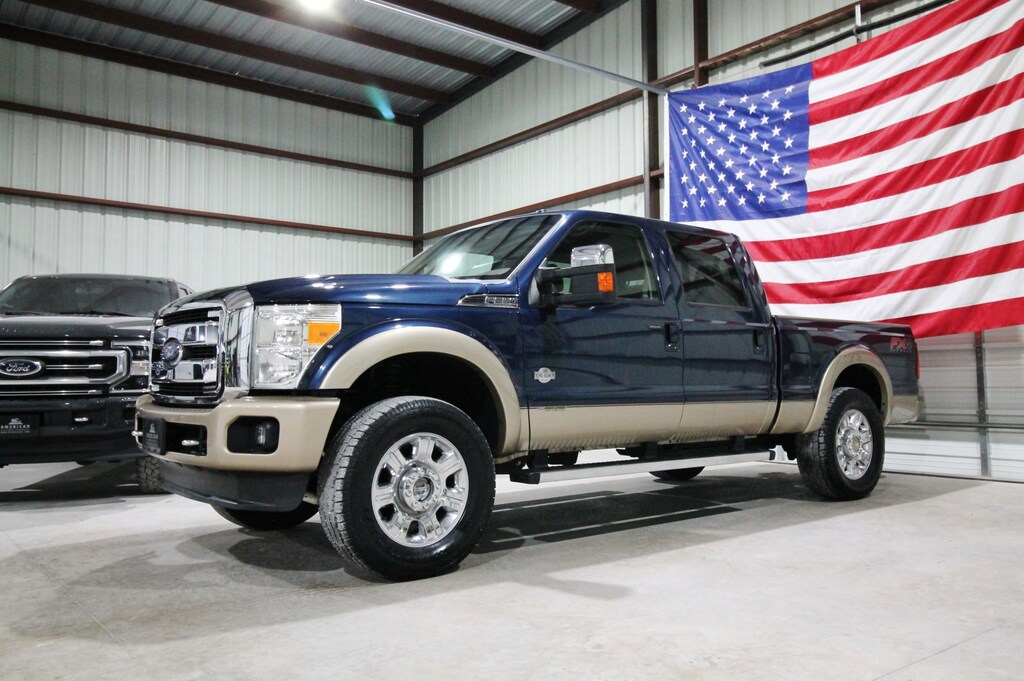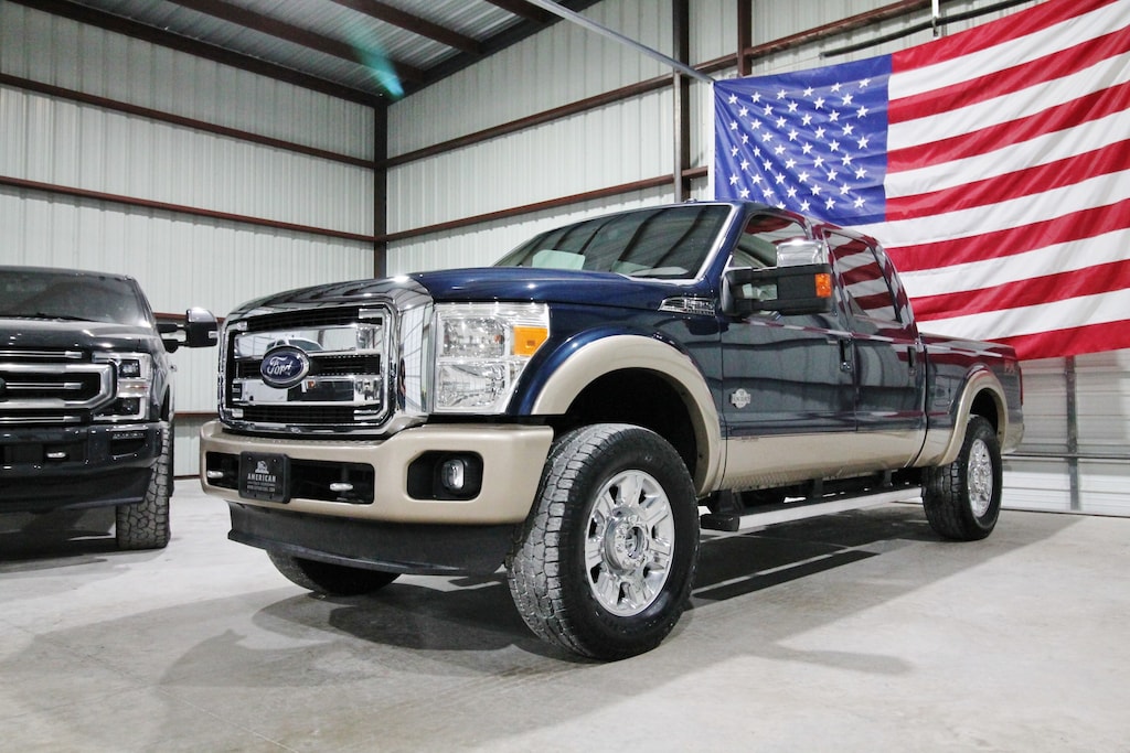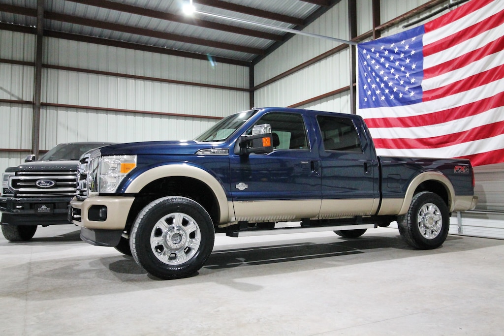 For sale is a very clean and well-maintained 2013 Ford F-250 King Ranch 4x4 powered by the 6.7L Powerstroke diesel paired with an automatic transmission and electronic four-wheel drive. This two-owner Texas truck has 220k miles, an impressive 40 detailed service records on Carfax, and has been locally owned and maintained. It’s leveled and riding on brand new 35" all-terrain tires and finished in the highly sought-after Blue Jeans Metallic paint. The exterior is extremely clean and straight with factory running boards, while the interior features the signature King Ranch saddle leather with dual power seats, heated and cooled seats, power adjustable pedals, a fixed center console, and a factory touchscreen radio with navigation and a backup camera. Additional features include upfitter switches, electronic 4x4, a built-in trailer brake, and power mirrors, windows, and locks. This King Ranch is a sharp, hard-to-find truck that’s been very well cared for and is ready for its next owner.