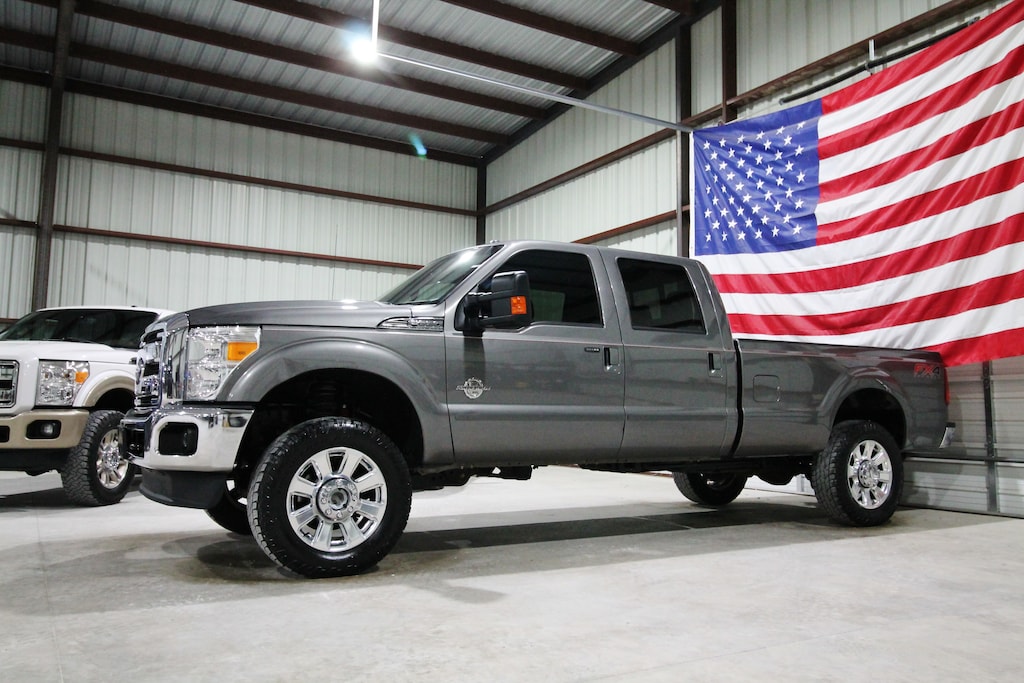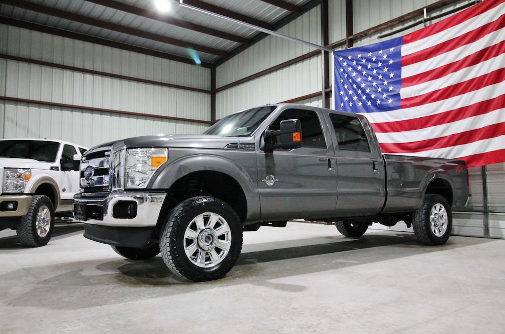 This 2014 Ford F-350 Lariat 4x4 is a two-owner, clean Carfax Texas truck with 216K miles and 27 detailed service records reported, powered by the proven 6.7L Powerstroke diesel paired with an automatic transmission and electronic four-wheel drive. It’s leveled and upgraded with 2017+ Platinum wheels wrapped in Cooper all-terrain tires, giving it a sharp, updated look, and is equipped with a factory gooseneck hitch, making it ready to work. Inside, the black leather interior is very clean and features the Lariat Ultimate Package with dual power heated and cooled seats, power adjustable pedals, sunroof, factory touchscreen radio, backup camera, upfitter switches, built-in trailer brake, and full power options including mirrors, windows, and locks. A great-looking, well-maintained Super Duty that offers strong performance, solid features, and everyday usability.