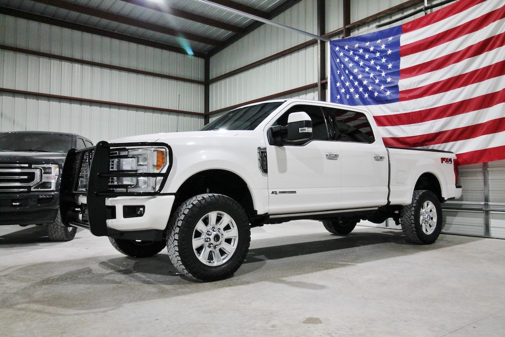For sale is a stunning 2017 Ford F-250 Platinum 4x4 powered by the 6.7L Powerstroke diesel paired with an automatic transmission and electronic four-wheel drive. This Texas truck has 160k miles and an impressive 57 detailed records reported to Carfax. It rides beautifully thanks to BDS leveling coils, BDS radius arms, Fox shocks all around, and like-new 295/65/20 Nitto Ridge Grapplers. Finished in gorgeous White Platinum Metallic paint, it features a B&W gooseneck hitch, a bed that looks like new, factory power running boards, quad beam LED headlights, LED tail lights, 360 cameras, blind spot monitoring, and a Ranch Hand grille guard. Inside, this Platinum Ultimate Package truck is extremely clean and loaded with premium black Platinum leather, dual power heated and cooled seats, multicontour massaging seats, power telescoping steering wheel, power adjustable pedals, adaptive cruise control, lane keep assist, a fixed center console, factory touchscreen with navigation and backup camera, panoramic sunroof, upfitter switches, and a built-in trailer brake. This beautiful, well-equipped Platinum has it all—power mirrors, power windows, and power locks—and is ready to turn heads anywhere it goes.