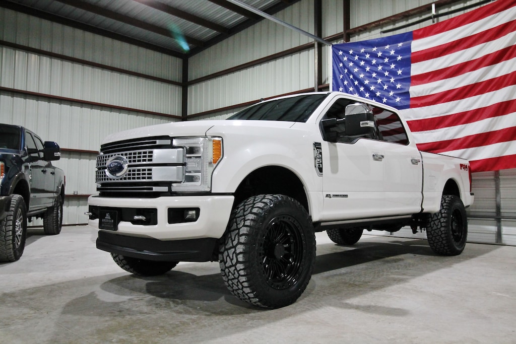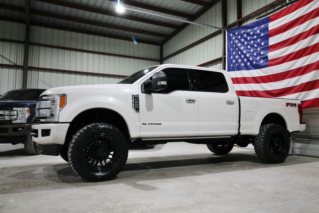 This 2019 Ford F-250 Platinum 4x4 is a clean Carfax Texas truck with only 153K miles and 25 detailed service records reported to Carfax, powered by the powerful 6.7L Powerstroke diesel paired with an automatic transmission and electronic four-wheel drive. It features a ReadyLift leveling kit and sits on brand new 22x10 Arena Hustle wheels wrapped in brand new 37x13.50x22 mud-terrain tires, giving it an aggressive stance that truly turns heads. The truck is extremely clean inside and out, has never had a hitch in the bed, and is finished with factory power running boards, quad beam LED headlights, LED tail lights, 360 cameras, and blind spot monitors. Inside, the Platinum Ultimate Package offers the hard-to-find Dark Marsala interior along with dual power heated and cooled seats, multicontour massaging seats, power telescoping steering wheel, power adjustable pedals, adaptive cruise control, lane keep alert, panoramic sunroof, navigation, backup camera, electronic 4x4, built-in trailer brake, and a huge Tesla-style touchscreen radio upgrade. Loaded with luxury, technology, and serious diesel capability, this Platinum truly has it all.