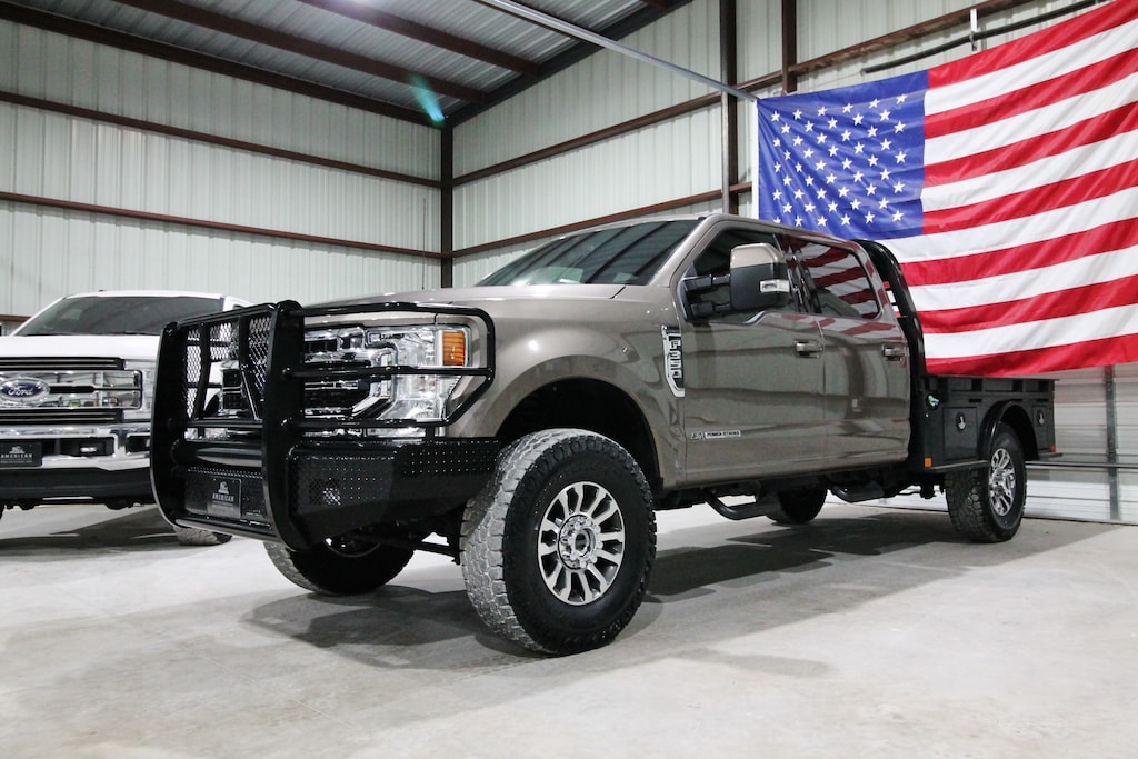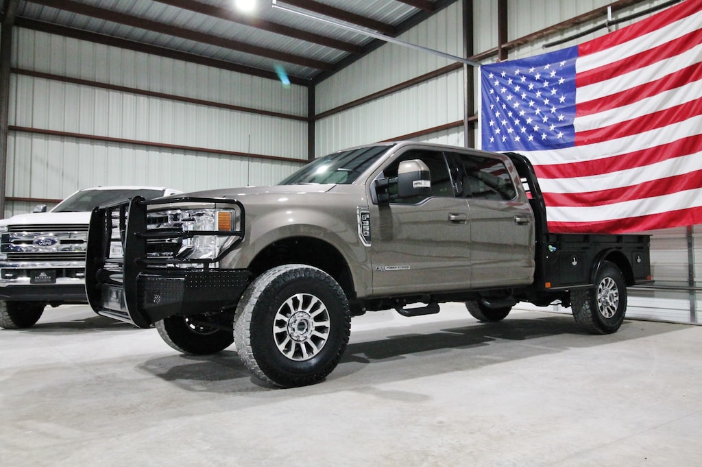 For sale is a sharp and well-equipped 2022 Ford F-350 Lariat 4x4 powered by the 6.7L Powerstroke Diesel paired with an automatic transmission and electronic four-wheel drive. This one-owner Texas truck has 180k miles with 22 detailed service records reported to Carfax, showing excellent maintenance history. It’s leveled and sits on brand new 37" all-terrain tires, featuring a super nice CM skirted flatbed, full replacement front bumper, and the highly sought-after Stone Gray paint. The truck also includes a cargo camera and looks fantastic inside and out. The black leather interior is clean and well-kept, offering dual power heated and cooled seats, power adjustable pedals, a fixed center console, and a huge factory touchscreen radio with navigation and a premium B&O audio system. Additional features include electronic 4x4, upfitter switches, a built-in trailer brake, power mirrors, power windows, and power locks. This F-350 combines strength, style, and comfort—perfect for work, hauling, or everyday driving.