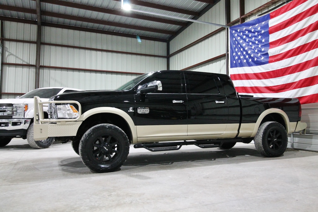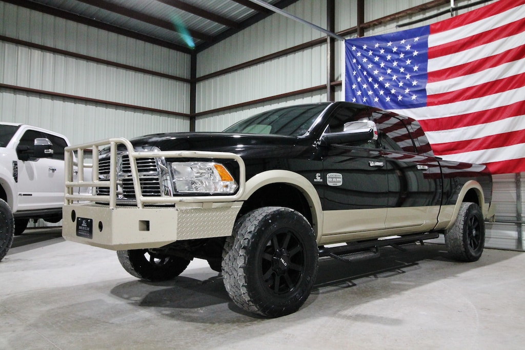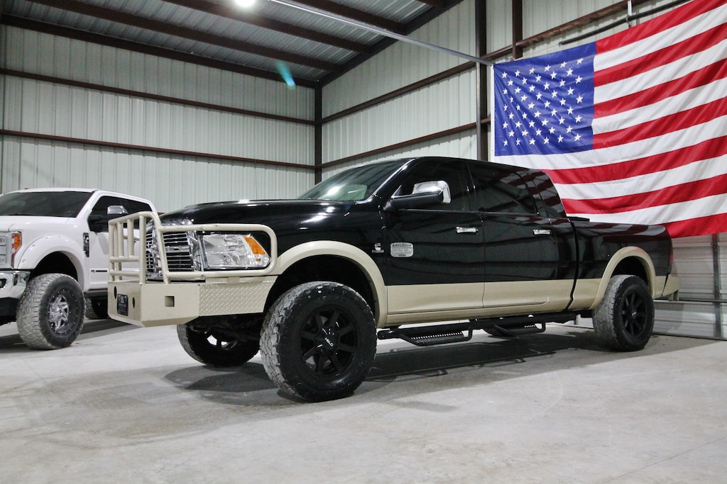 For sale is a sharp and well-maintained 2012 RAM 3500 Laramie Longhorn Mega Cab 4x4 powered by the 6.7L Cummins Turbo Diesel paired with an automatic transmission and electronic four-wheel drive. This two-owner Texas truck has 209k miles, a clean Carfax, and an impressive 52 detailed service records reported, showing excellent maintenance history. It’s leveled and rides on 20" Helo wheels with 35" Toyo AT3 tires, featuring custom full replacement steel bumpers front and rear, HD steel running boards, and a huge heavy-duty fuel tank toolbox combo in the bed. The body is clean and straight, with some clear fade on the hood and roof but otherwise in great condition. It’s never had a hitch in the bed and is extremely clean inside and out. The saddle leather interior is in excellent shape with no foul odors or smoke smells and comes loaded with dual power heated and cooled seats, a heated steering wheel, dual climate control, factory touchscreen radio with backup camera, and a sunroof. Additional features include electronic 4x4, a built-in trailer brake, power windows, and power locks. This Laramie Longhorn Mega Cab is a hard-to-find, well-cared-for truck that blends comfort, durability, and capability perfectly.