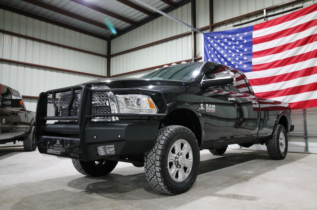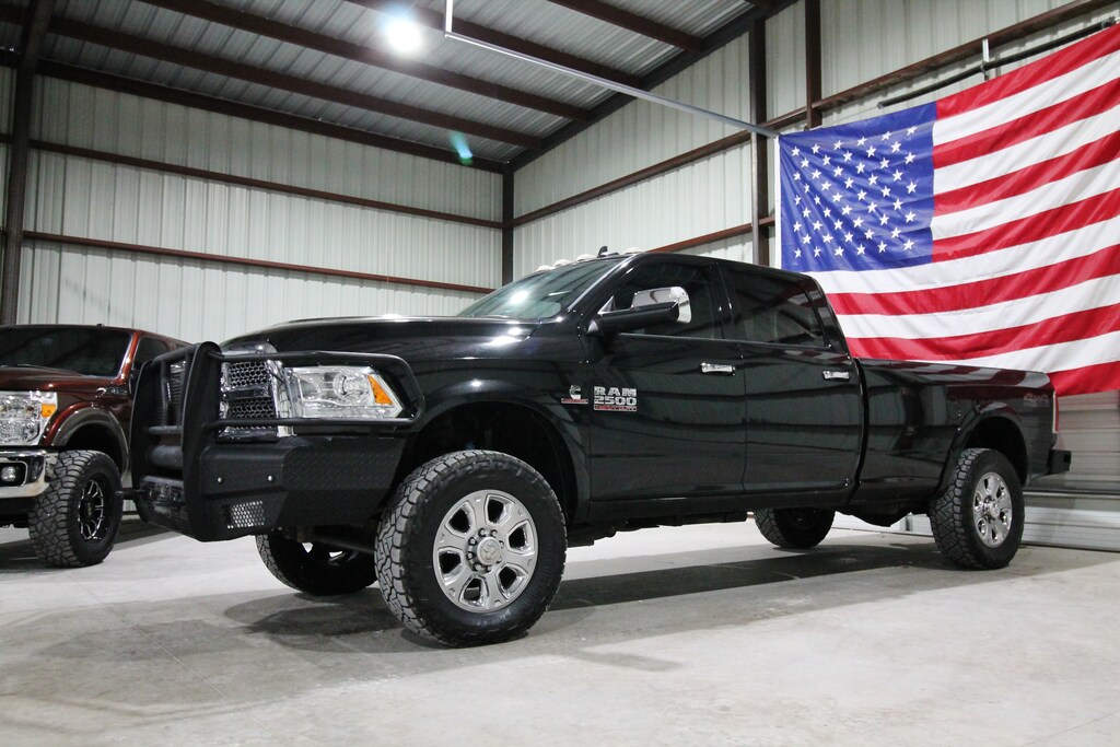 This 2017 RAM 2500 Laramie 4x4 is a one-owner, clean Carfax Texas truck with only 135K miles, recently traded in locally and backed by a great history of detailed services reported to Carfax. Powered by the legendary 6.7L Cummins Turbo Diesel paired with an automatic transmission and electronic four-wheel drive, it’s leveled and sits on like-new 295/65/20 Nitto all-terrain tires, along with full replacement bumpers front and rear, factory projector headlights, LED tail lights, and a B&W gooseneck hitch. It also features the hard-to-find cargo camera package for added towing convenience. The truck shows some minor dings and scratches consistent with a 10-year-old black truck, but overall presents very well. Inside, the leather-loaded Laramie interior includes tan leather seats, dual power seats, fixed center console, factory touchscreen radio with navigation, backup and cargo cameras, dual climate control, passive keyless entry with push-button start, power adjustable pedals, built-in trailer brake, and full power options. A well-equipped, well-maintained Cummins truck that offers strong capability, comfort, and value.